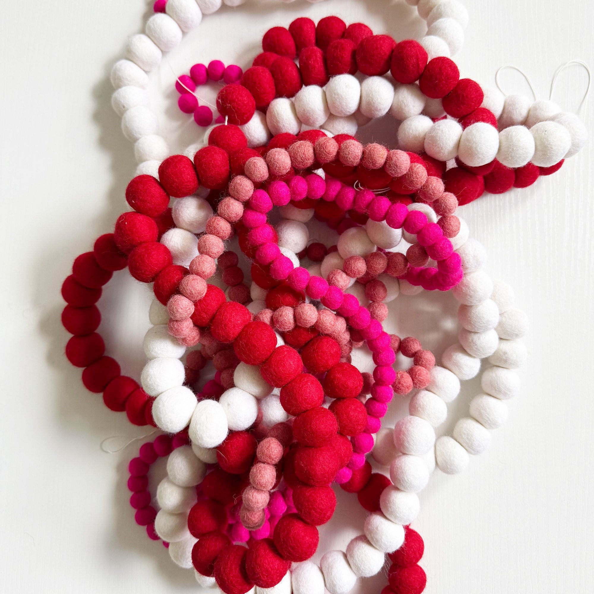 - Handmade Red Felt Balls Garland – Red birthday decorations 100% felted pom pom garland handcrafted by women in a deep red party shade for use as Christmas party decorations, Valentines garland, red birthday, and kitchen decorations.